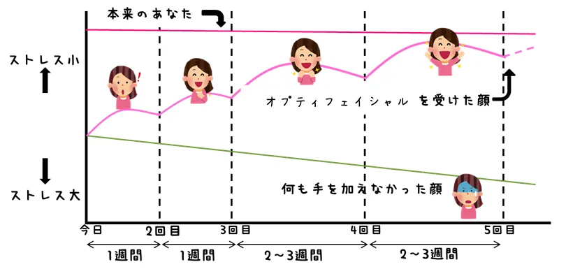 施術を受けるたびに、顔のベースラインが少しずつ上がっていきます。最初は戻りやすくても、回を重ねるごとに「これが私の顔だ」と体が覚えていく。